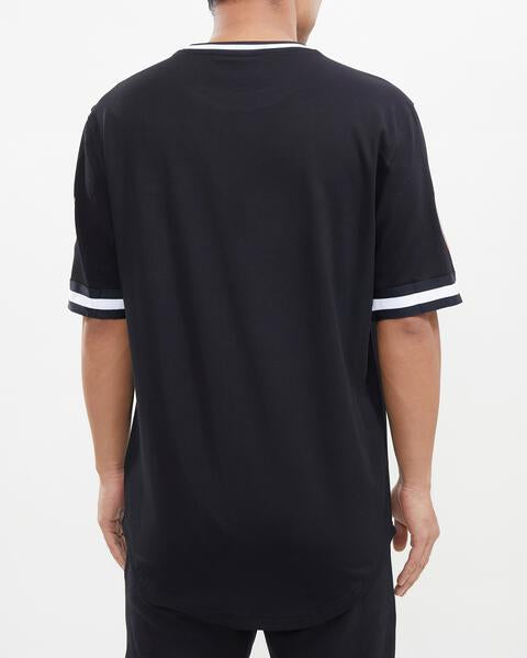 La playera de manga corta Pro Standard está confeccionada con un solo punto de algodón y presenta un bordado de puntadas satinadas 3D de sarga base y parches con el logotipo del equipo de primera calidad. La combinación de estos elementos crea una camisa única y llamativa que seguramente llamará la atención. Ya sea que te estés vistiendo para salir por la noche o simplemente estés buscando una camisa informal nueva y genial, nuestra camiseta es la elección perfecta.