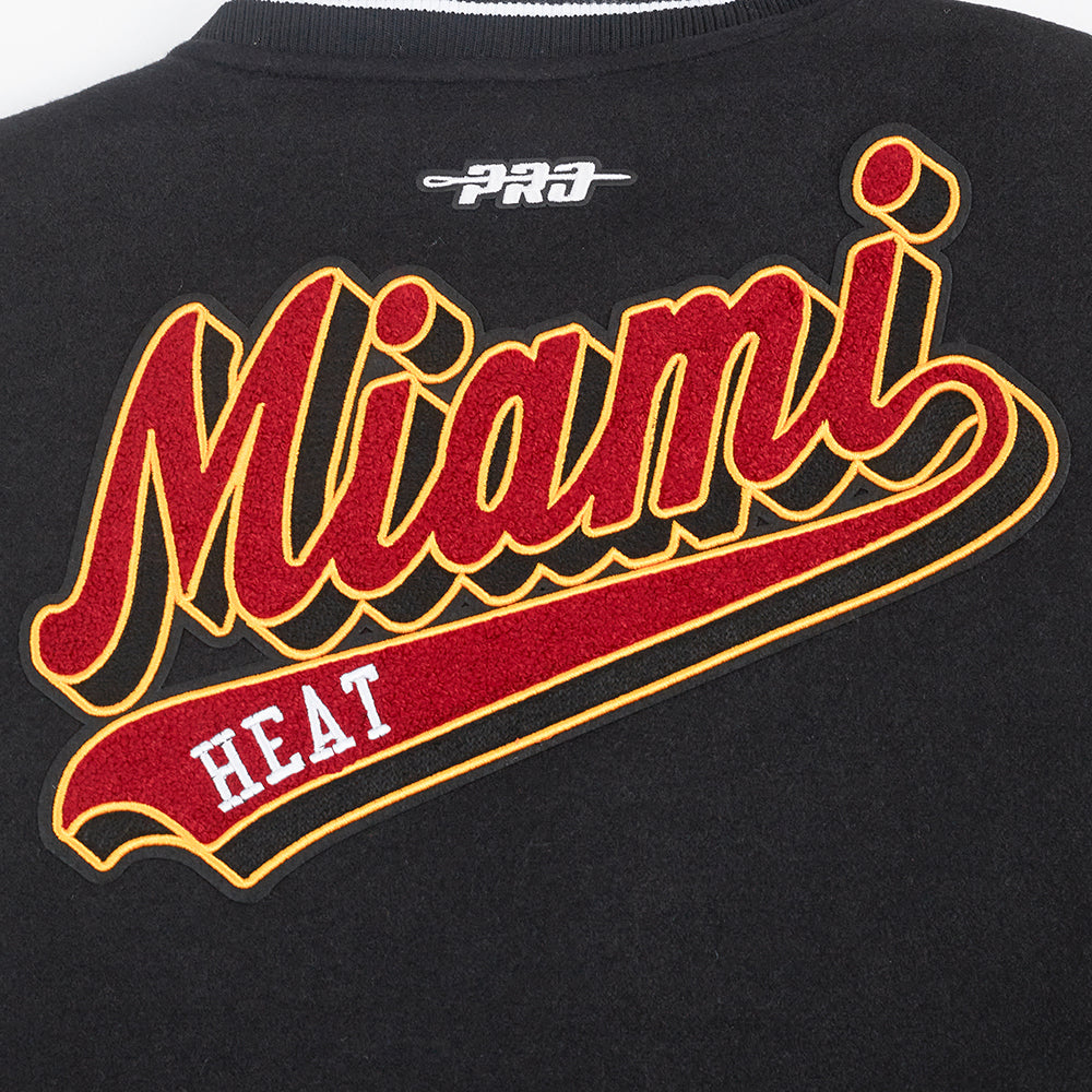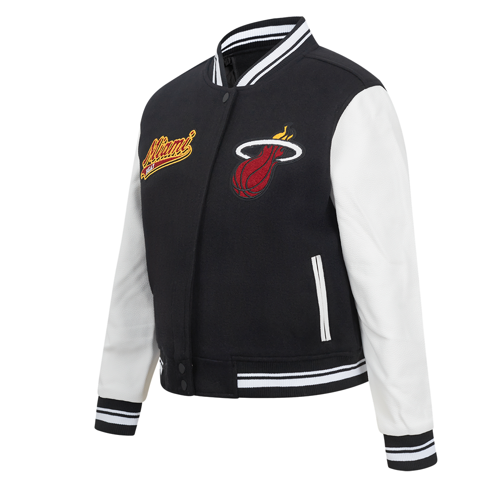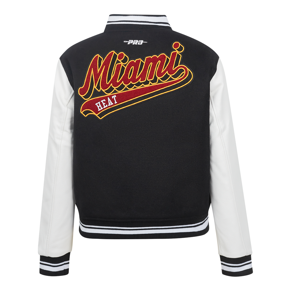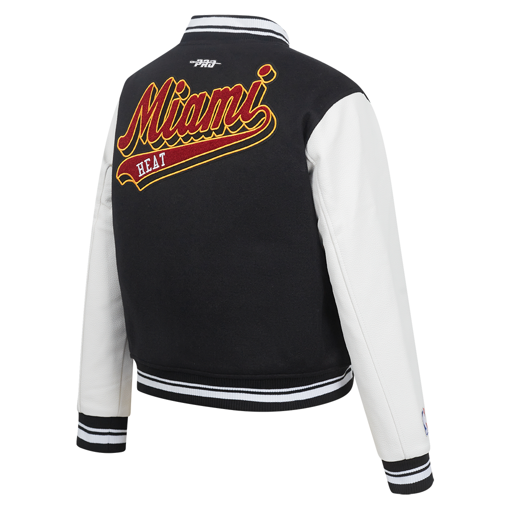 Chamarra Premium Pro Standard NBA Miami Heat Script Tail Wool Varsity Jacket Para Mujer