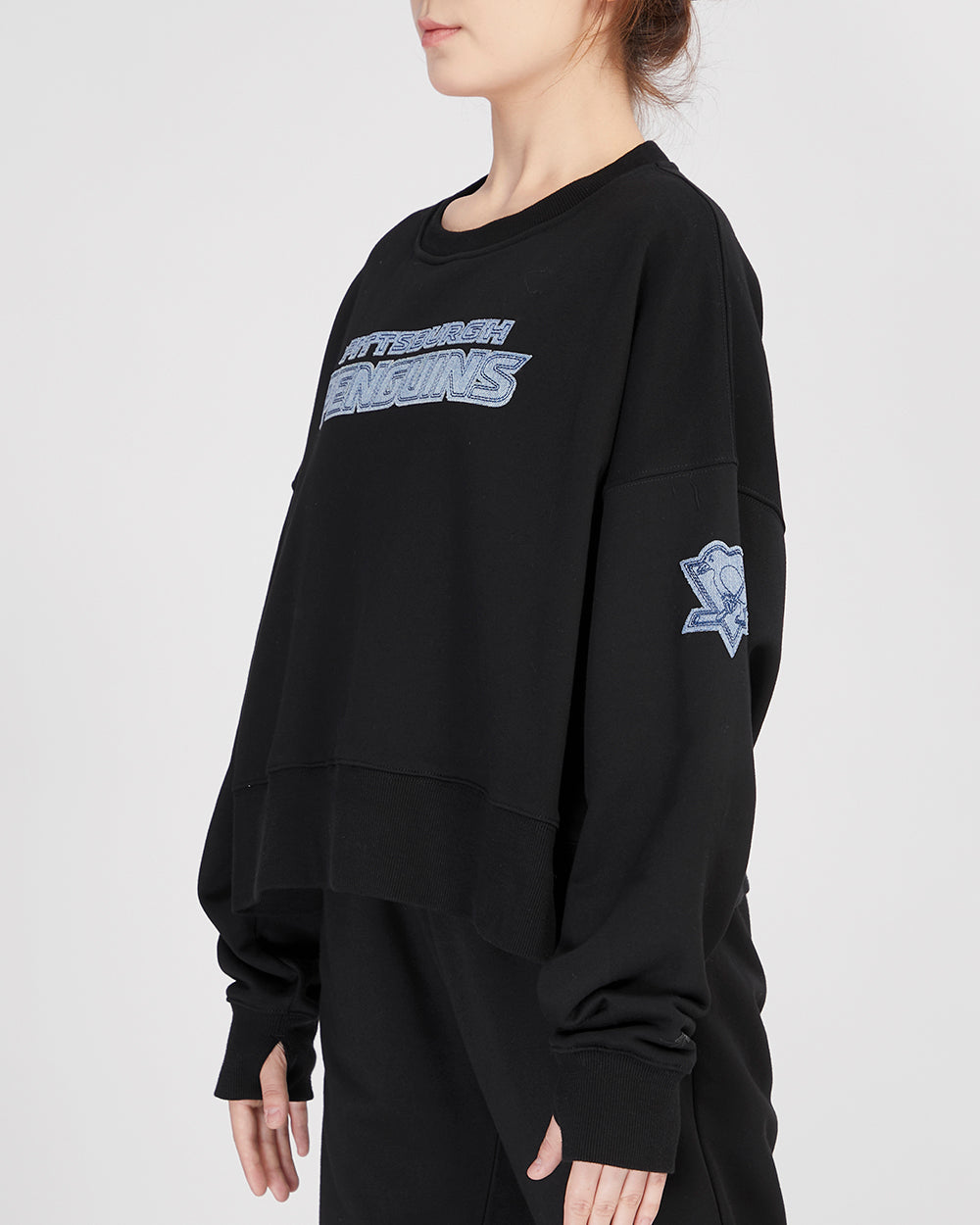 Sudadera Premium Pro Standard NHL Pittsburgh Penguins Varsity Blues Crewneck Para Mujer