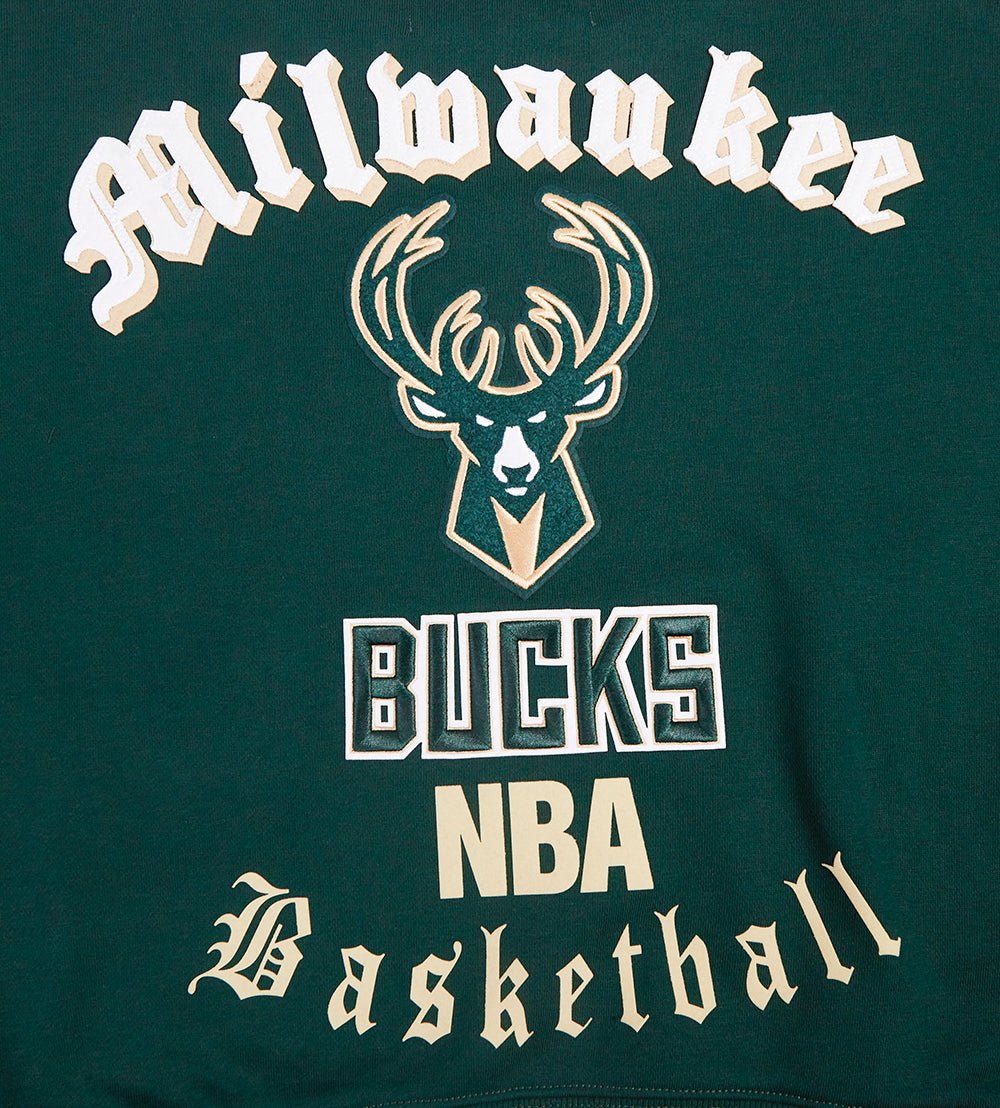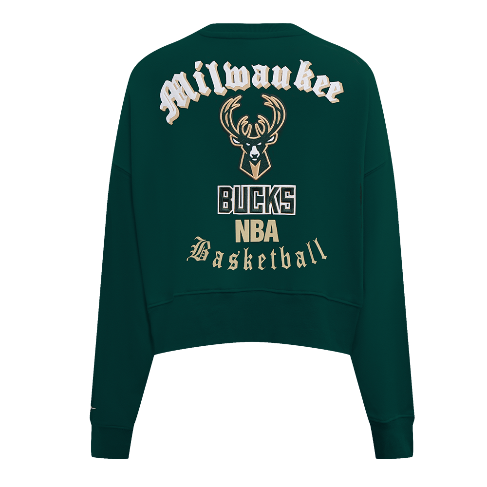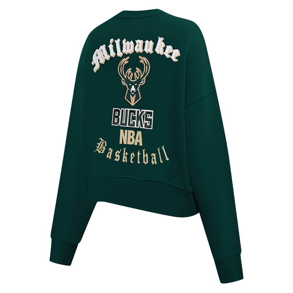SUDADERA DE CUELLO REDONDO NBA MILWAUKEE BUCKS OLD ENGLISH PARA MUJER