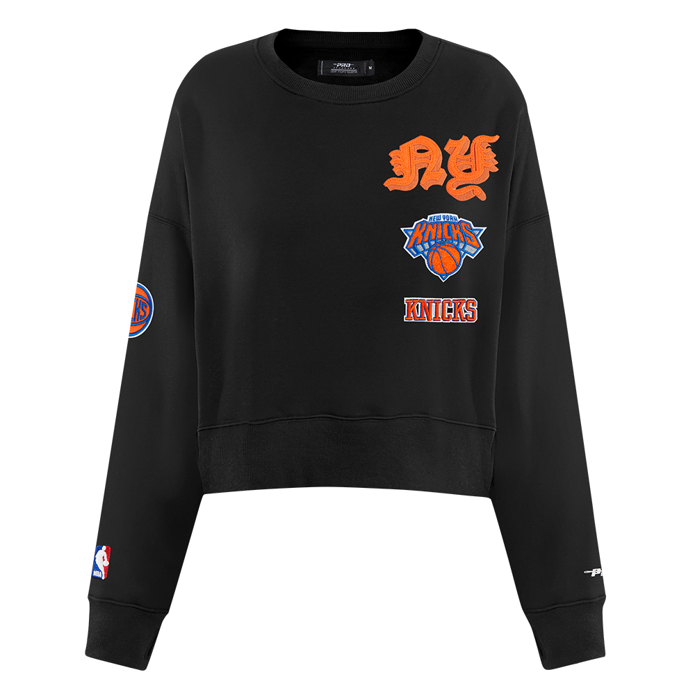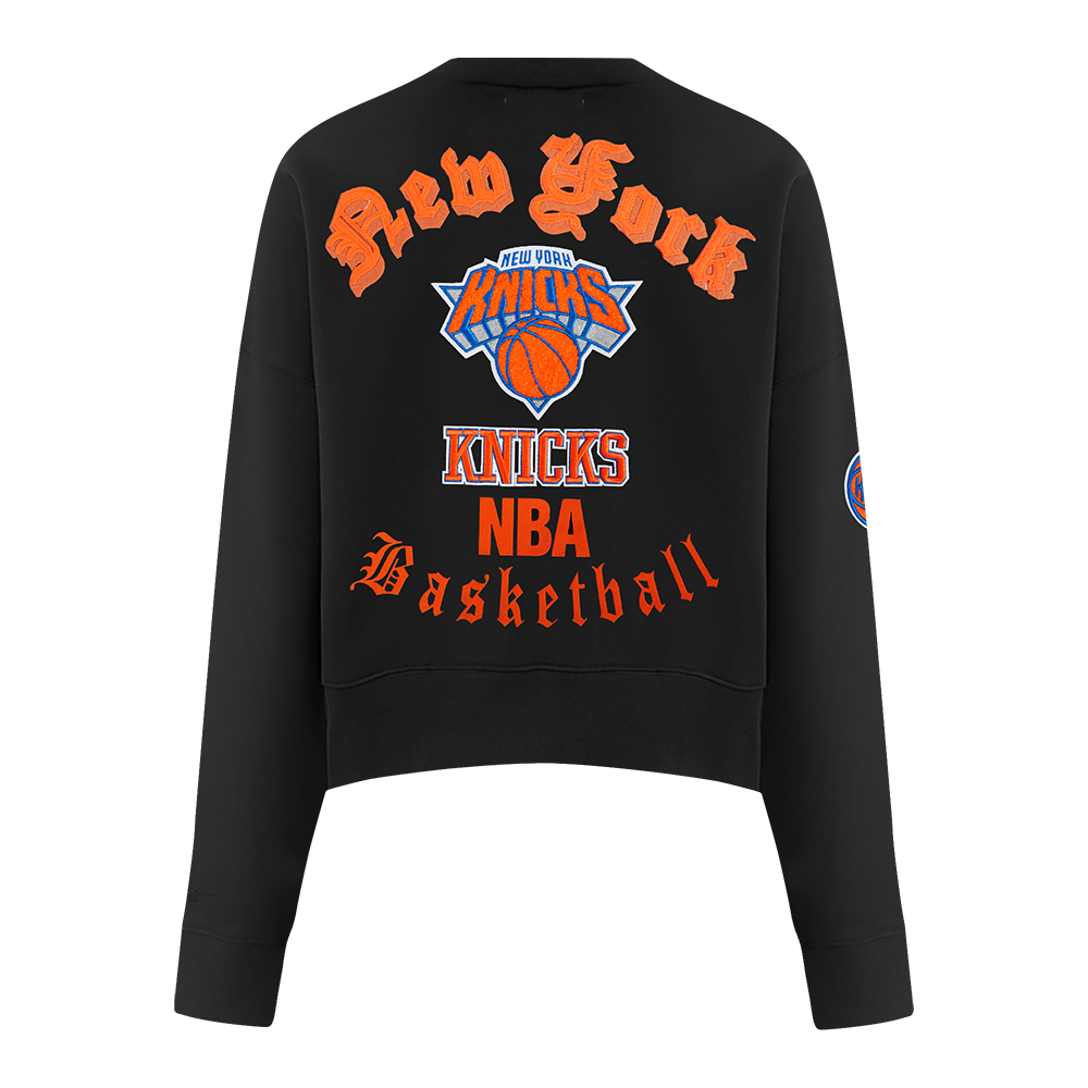 SUDADERA DE CUELLO REDONDO NBA NEW YORK KNICKS OLD ENGLISH PARA MUJER