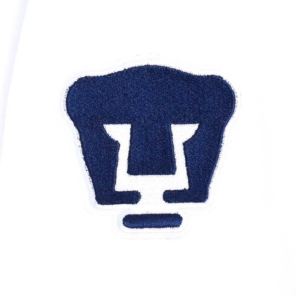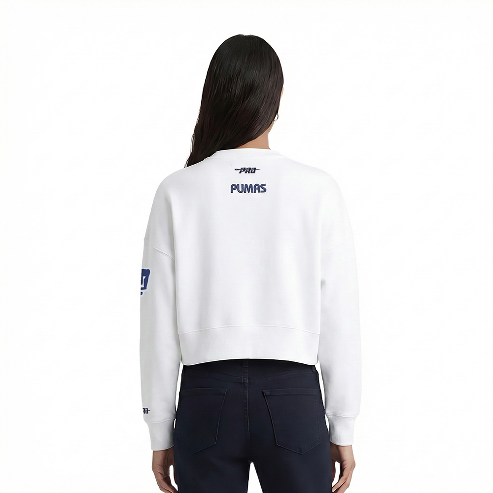 Sudadera Cropped Premium Pro Standard Liga MX Pumas UNAM Cuello Redondo Mangas Largas y Parches Bordados.