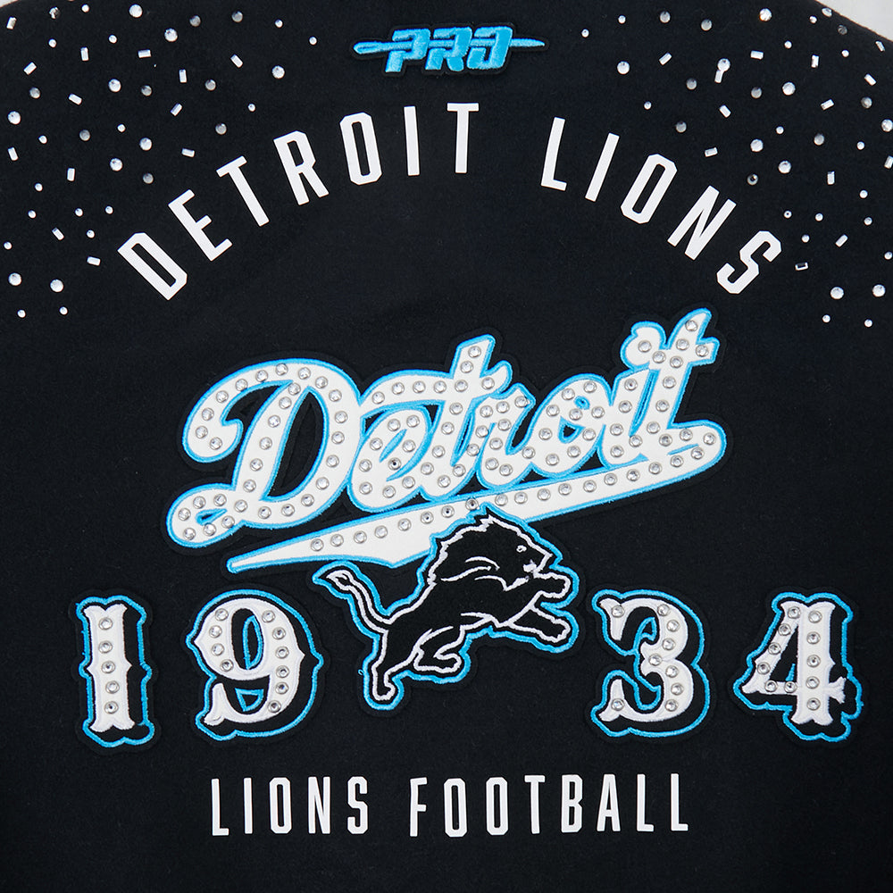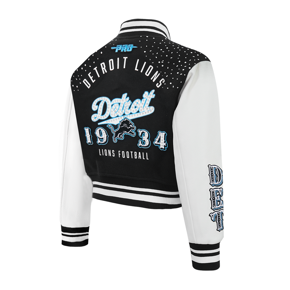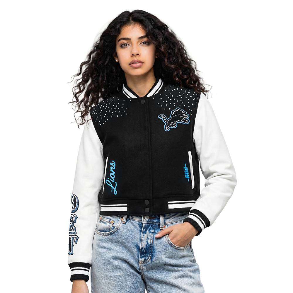 Chamarra cropped Premium Pro Standard NFL Detroit Lions Legacy Varsity Jacket para Mujer