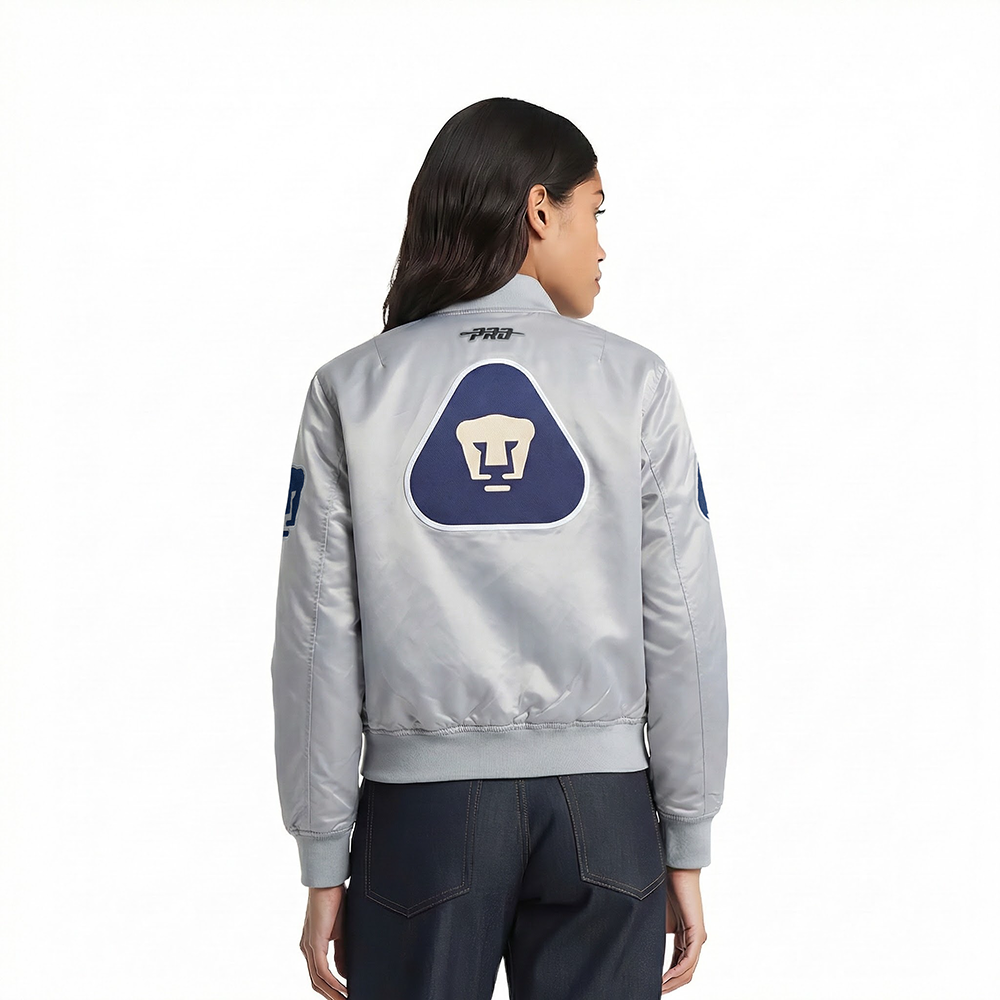 CHAMARRA DE SATIN LIGA MX PUMAS UNAM CLASSIC CHENILLE PARA MUJER